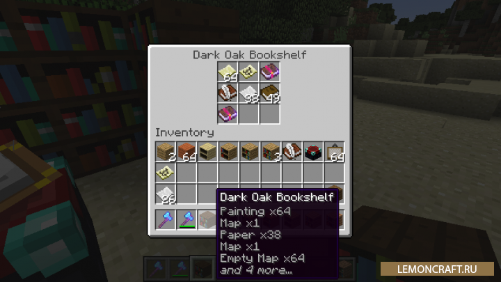 Мод Giacomo's Bookshelf позволит вам установить в своем доме красивую книжную полку. На этой полке можно будет хранить большое количество книг, всевозможных карт и бумаг. Благодаря этому моду вы в конце концов наведете порядок в своем доме. Теперь сундуки и другие предметы не будут валяться по всему дому, что позволит использовать освободившееся пространство более рационально.